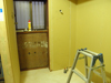 洗面所の工事です。以前はL型の浴室だったのでそのスペースに洗濯機置場、手洗いは窓の前に設置されていました。狭く使いにくかったので隣のLDの方へ壁を移動して洗濯機用パン、W750の洗面化粧台が一列に配置できるようにしました。上部収納も少し小さくなりましたが使えるように加工して広く使いやすい洗面所に生まれ変わりました。洗濯機用水栓も交換しました。