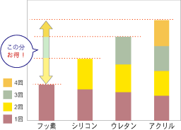 対してアクリル樹脂塗料では、その寿命から換算すると4回もの工事が必要となってきます。