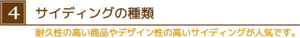 外壁の汚れを光で分解して雨で落とす光触媒サイディングや新築のような美しさが永持ちするフッ素焼付け塗装の金属サイディングなど耐久性の高い商品やデザイン性の高いサイディングが人気です。